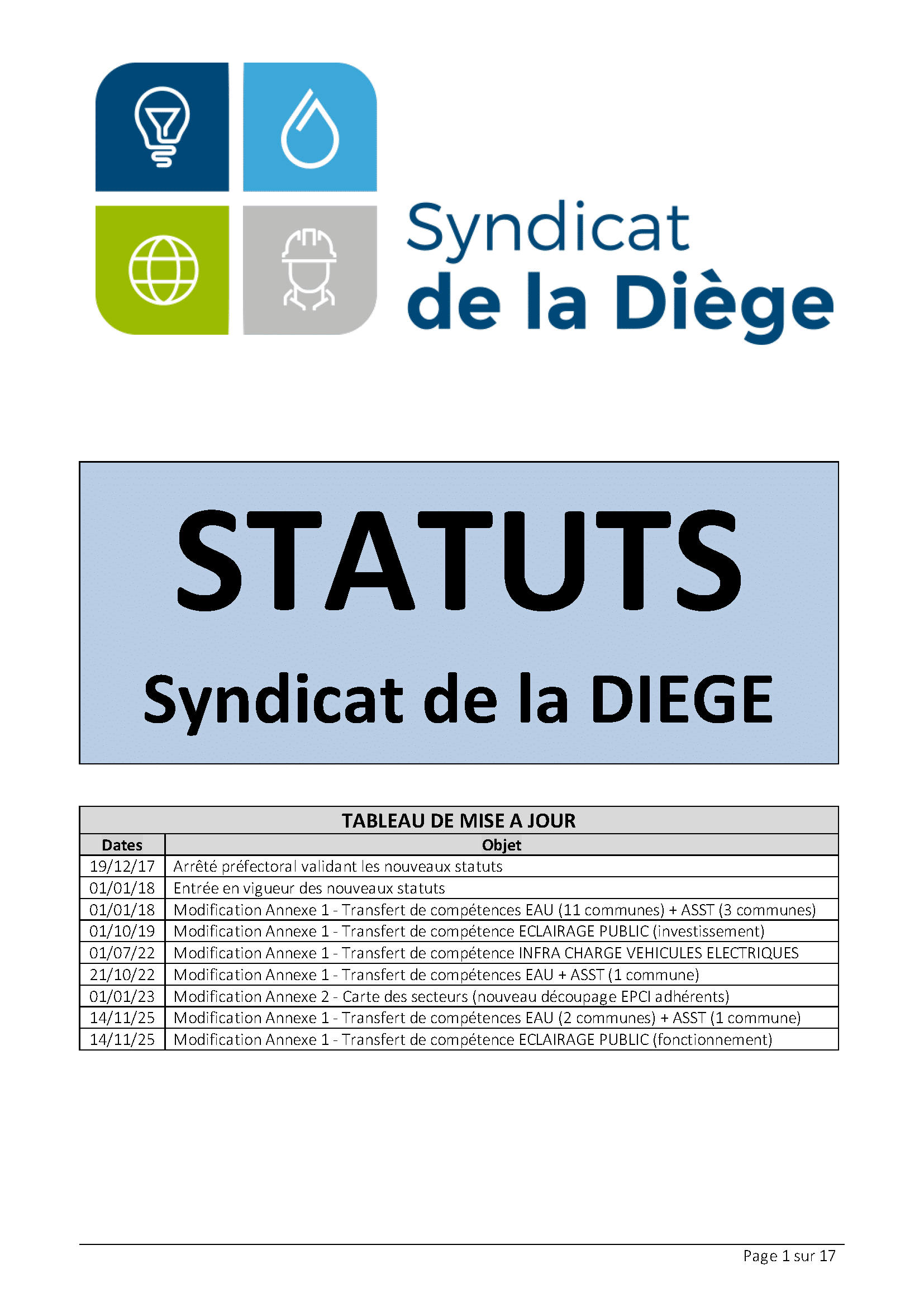Vous retrouverez ici la dernière version des statuts du Syndicat de la Diège.